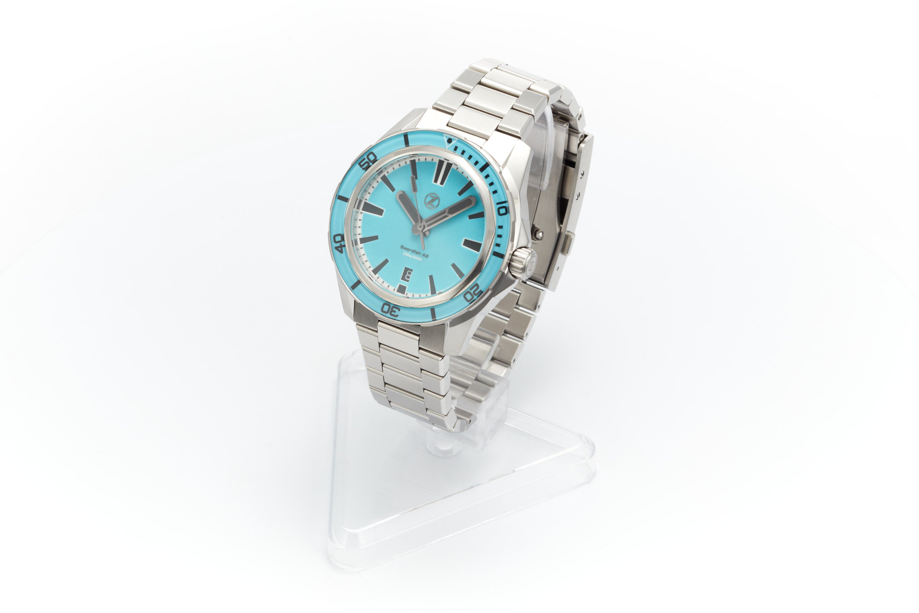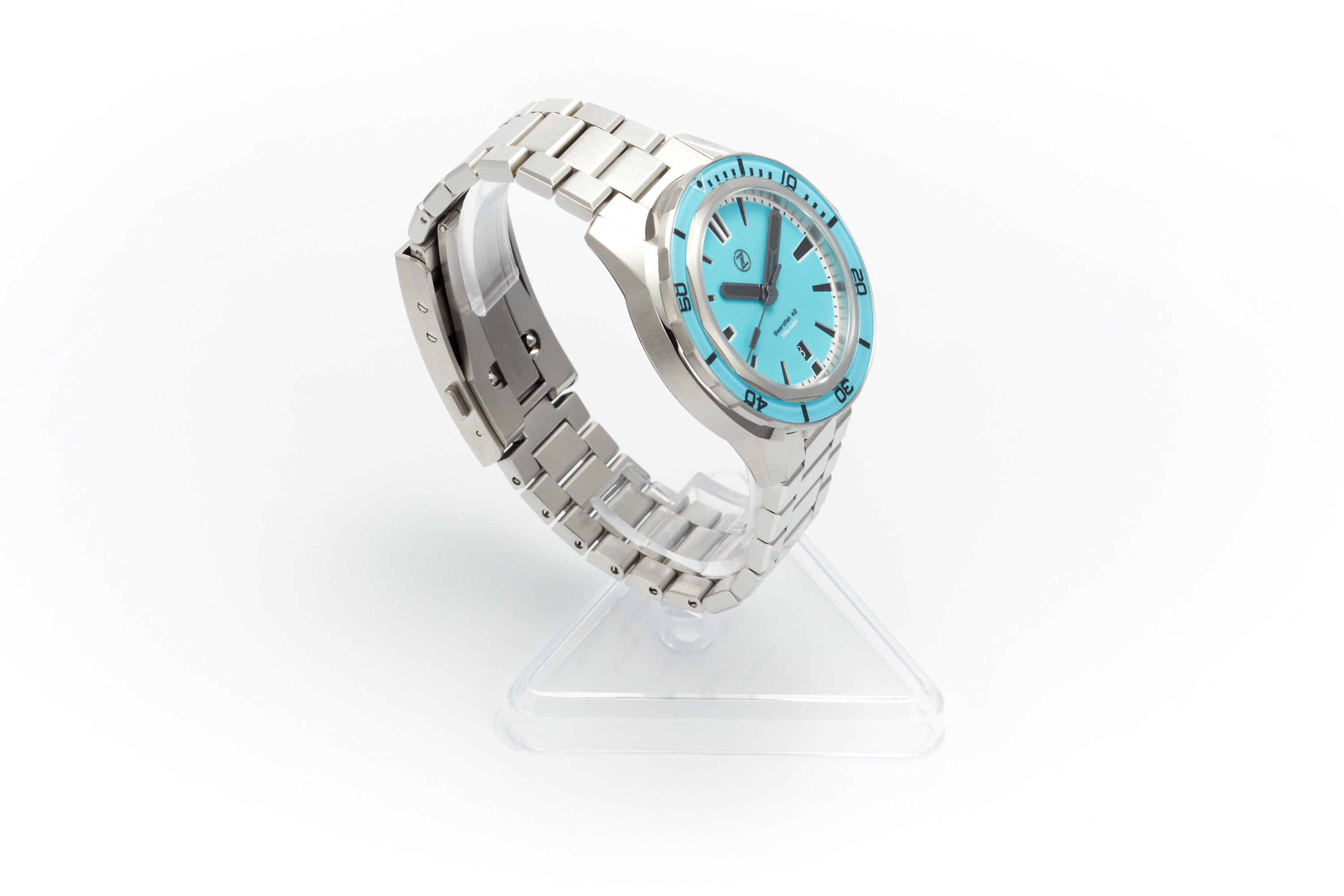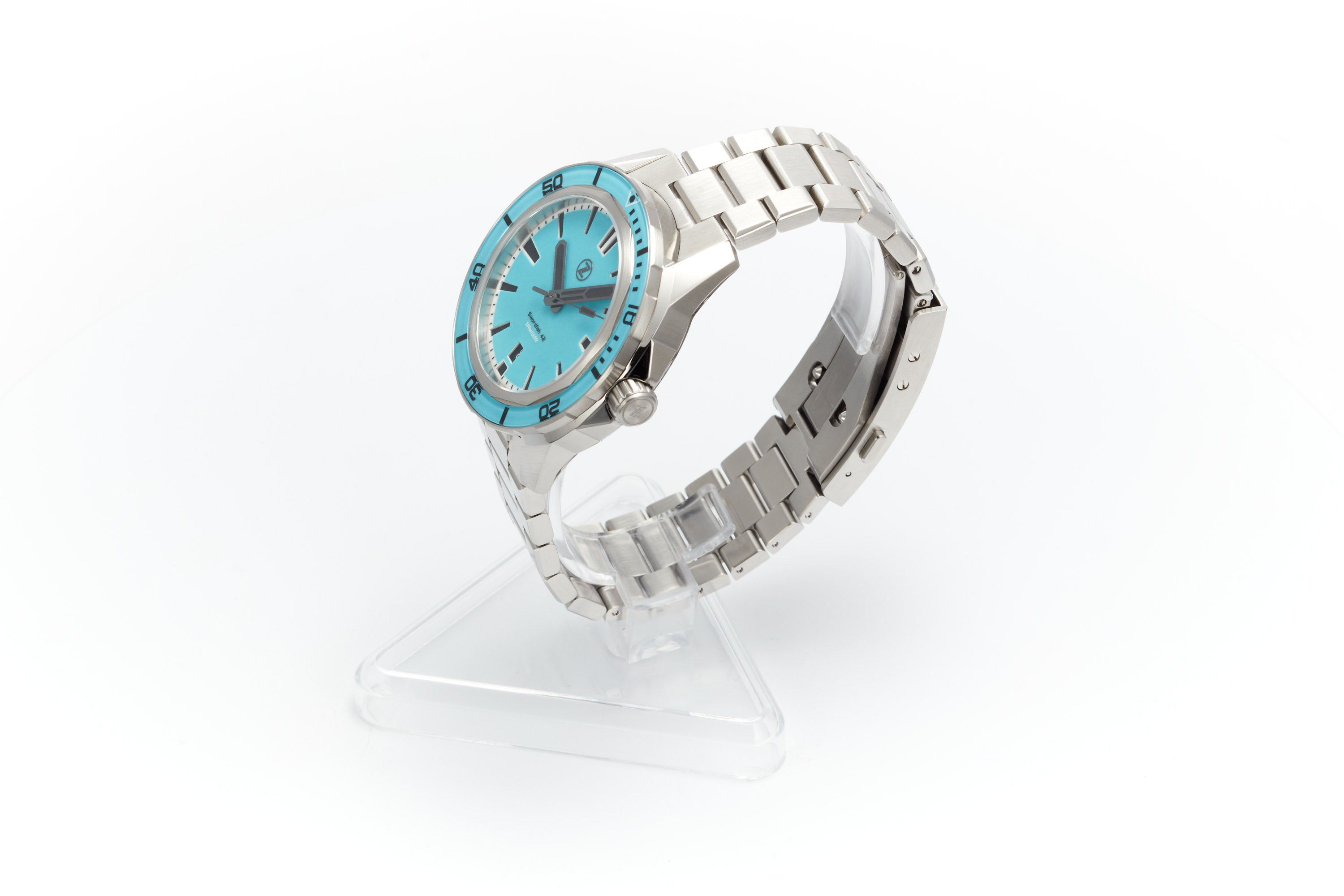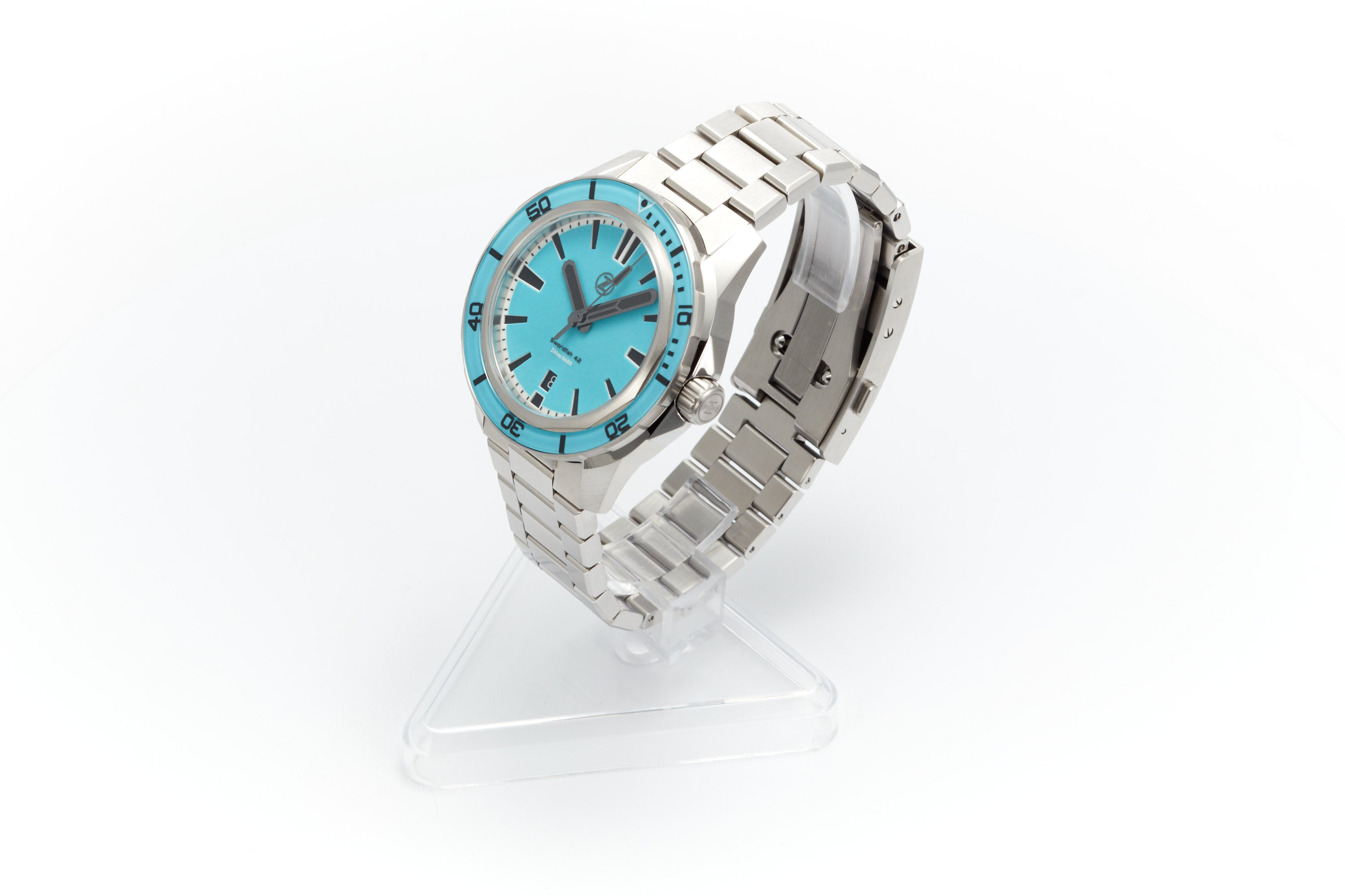 Fully lumed dial and sapphire bezel with Light blue Superluminova