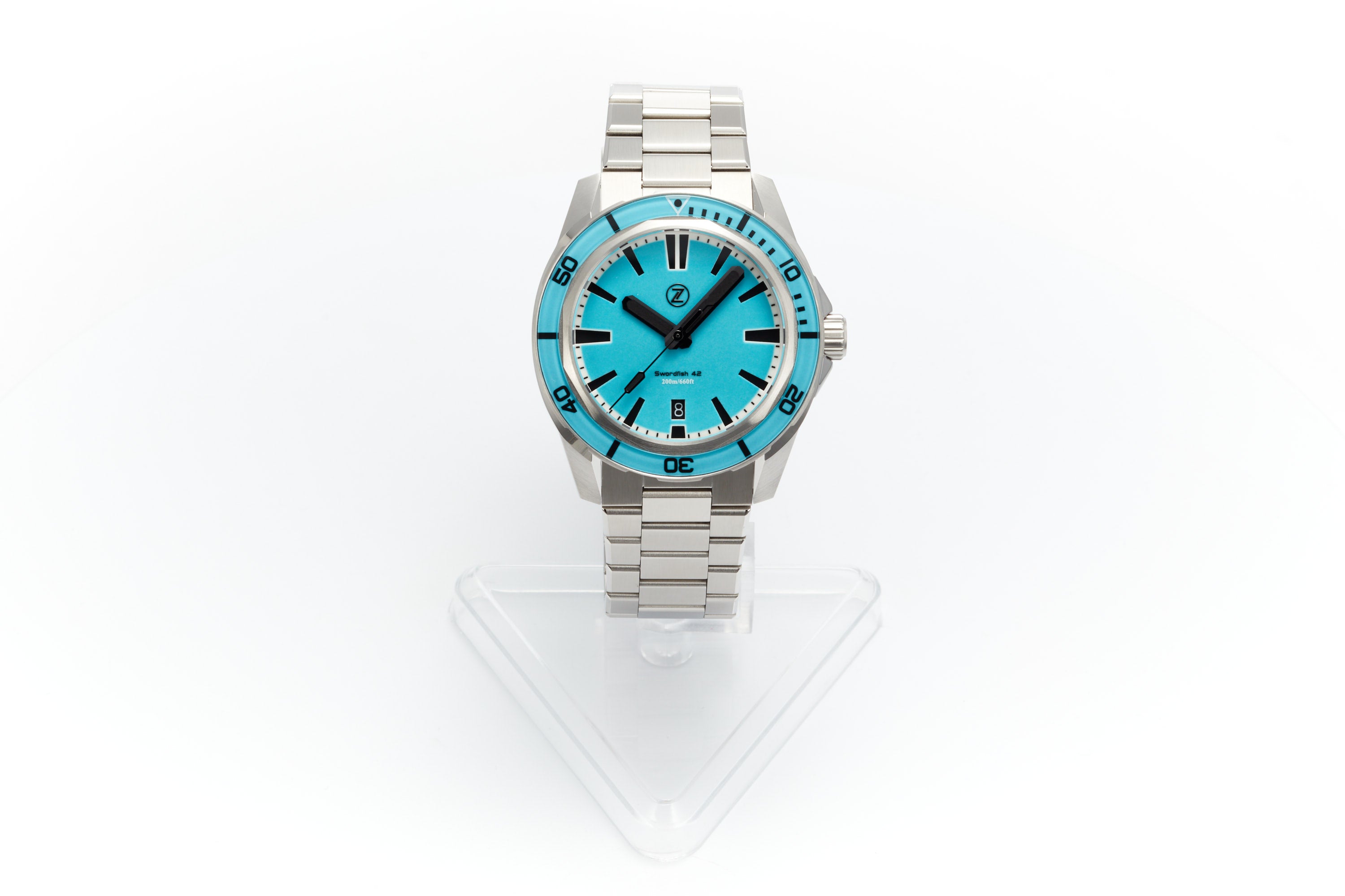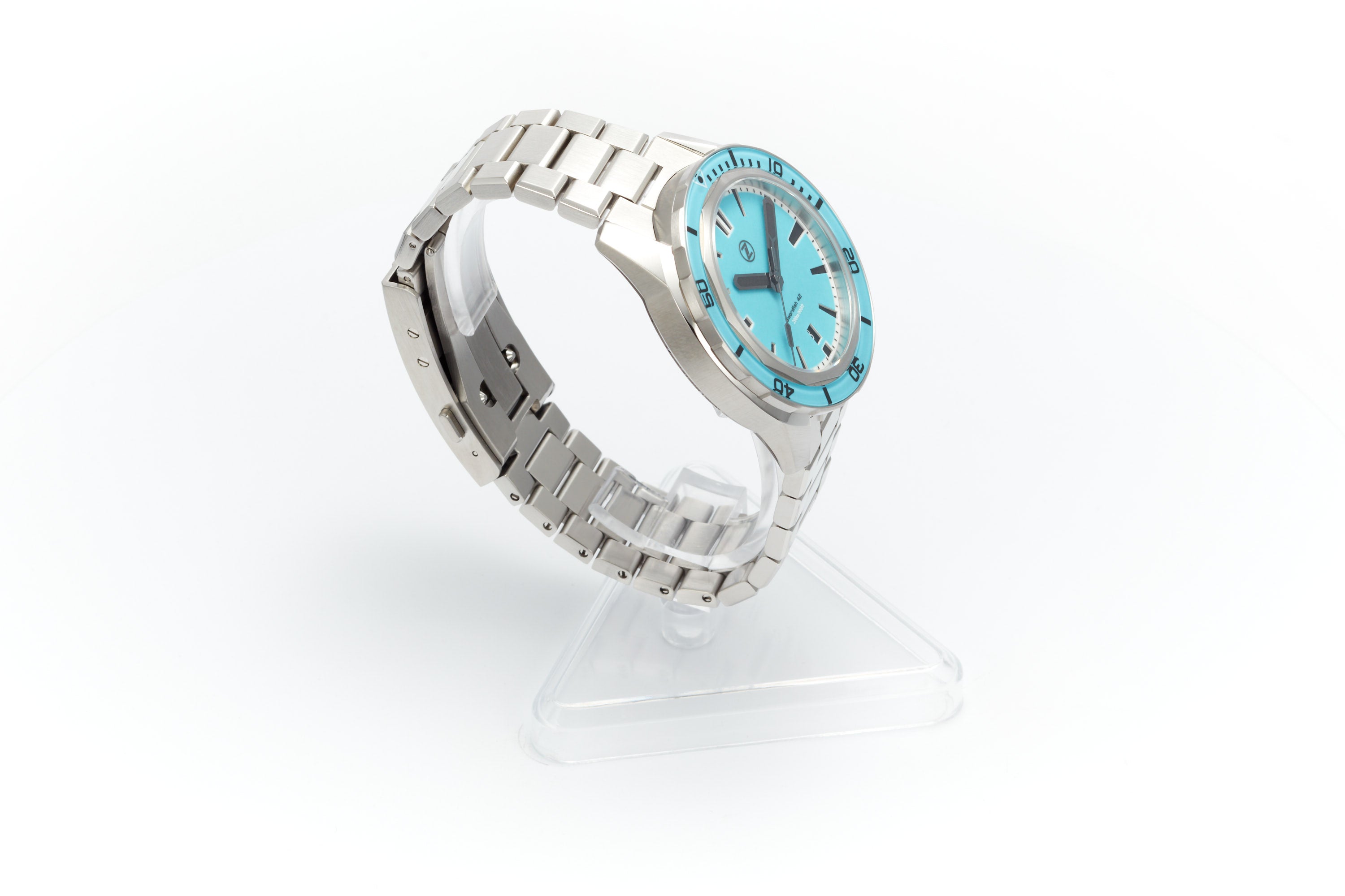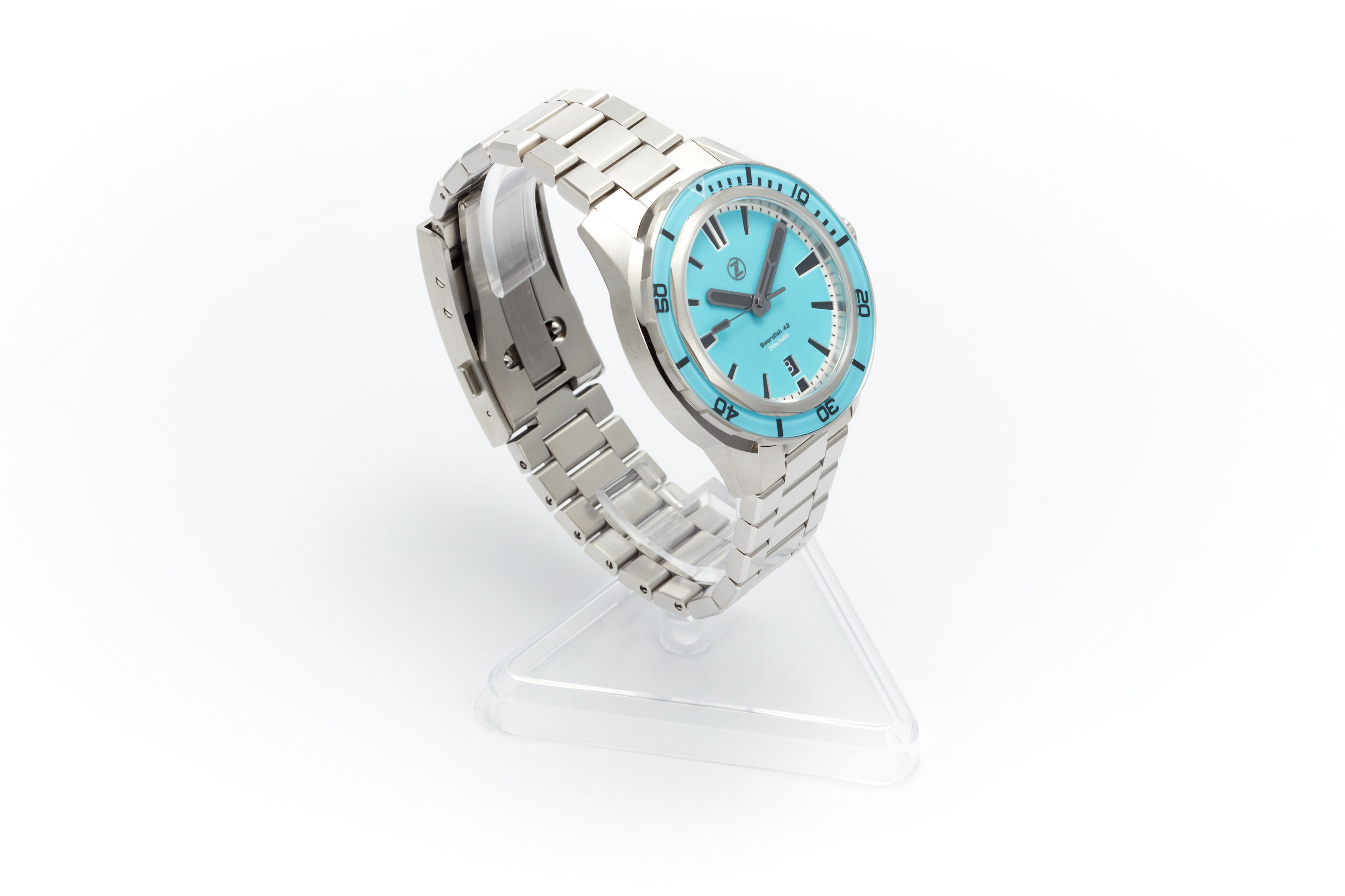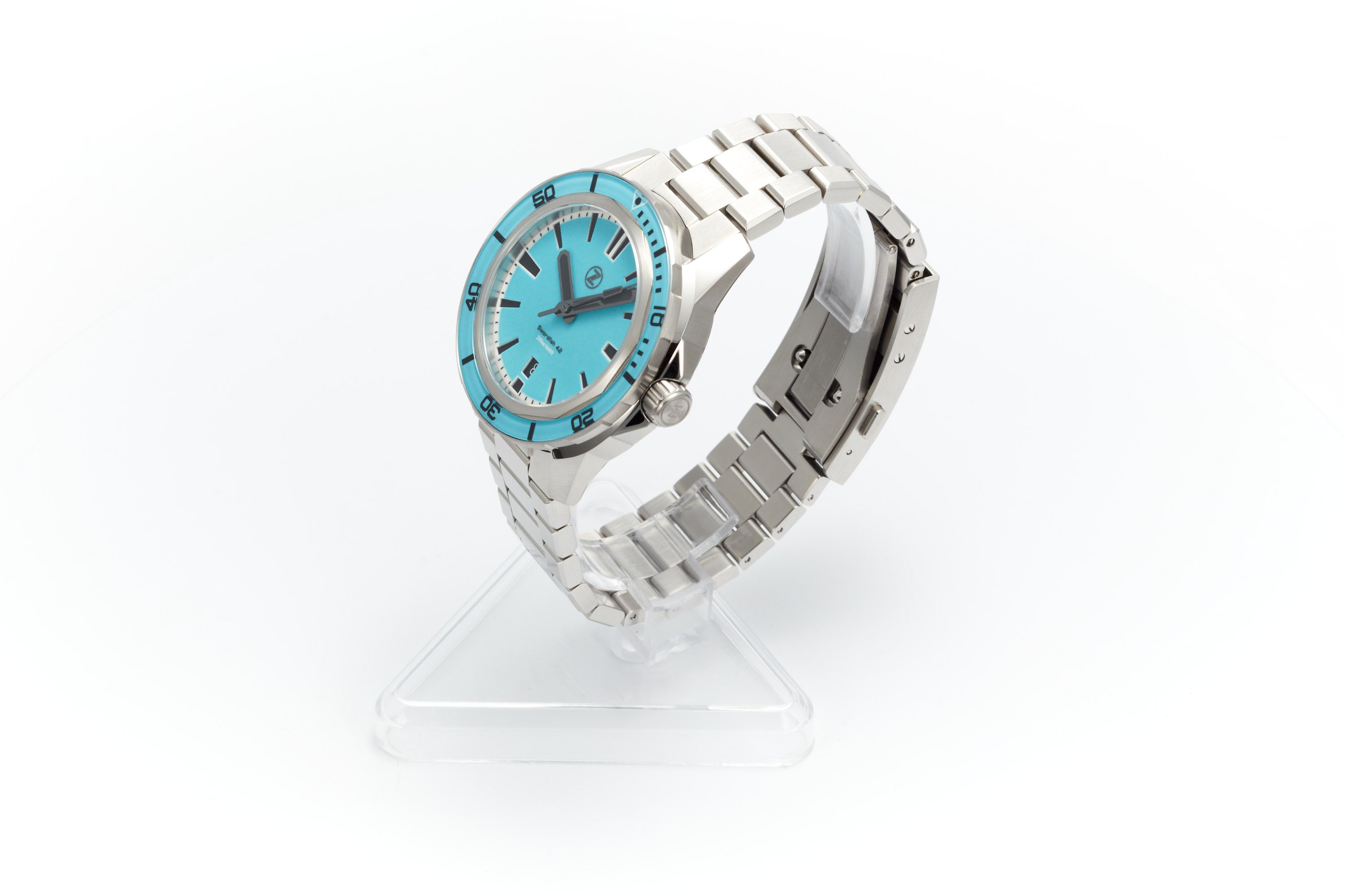 Fully lumed dial and sapphire bezel with Light blue Superluminova