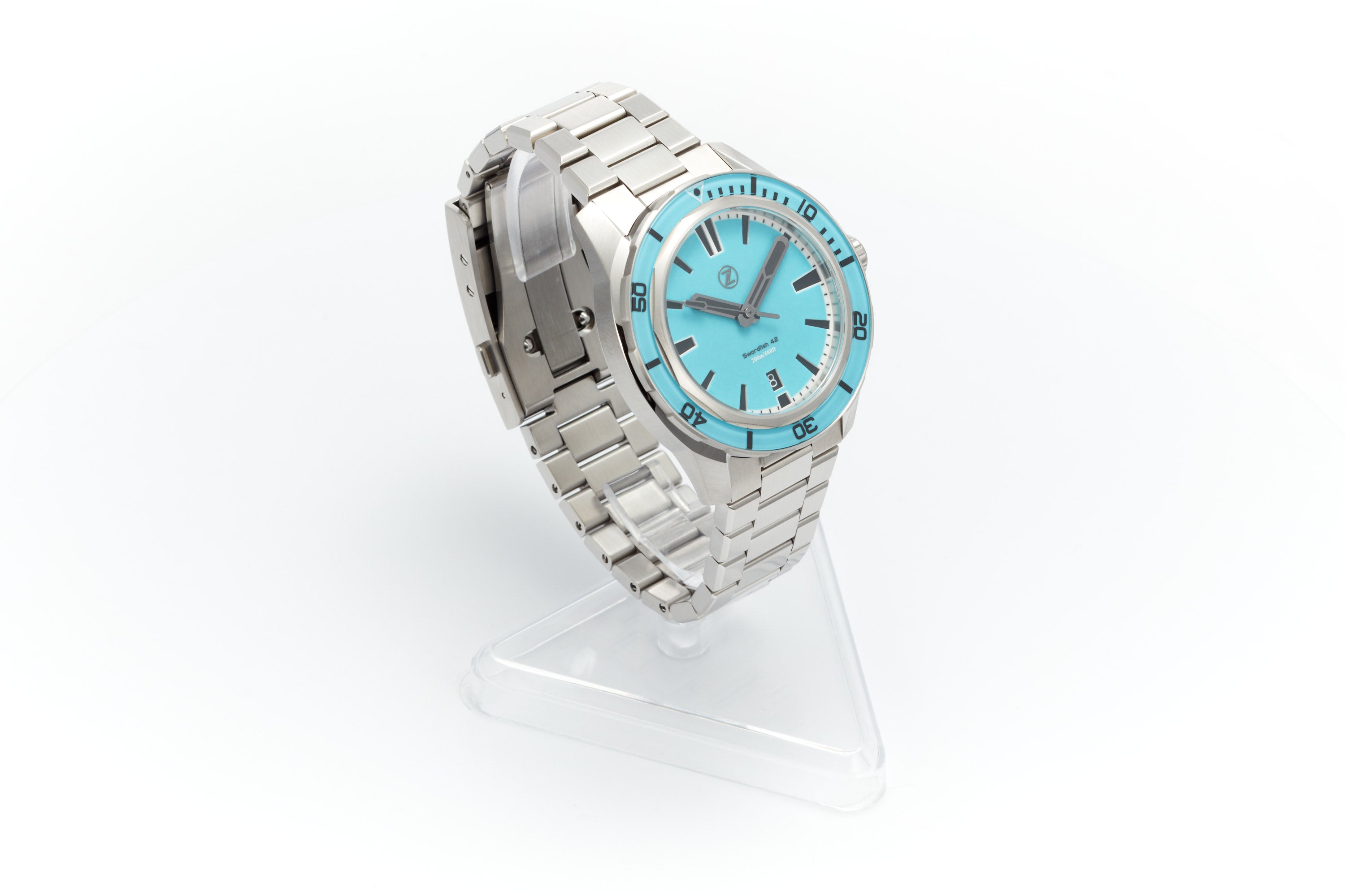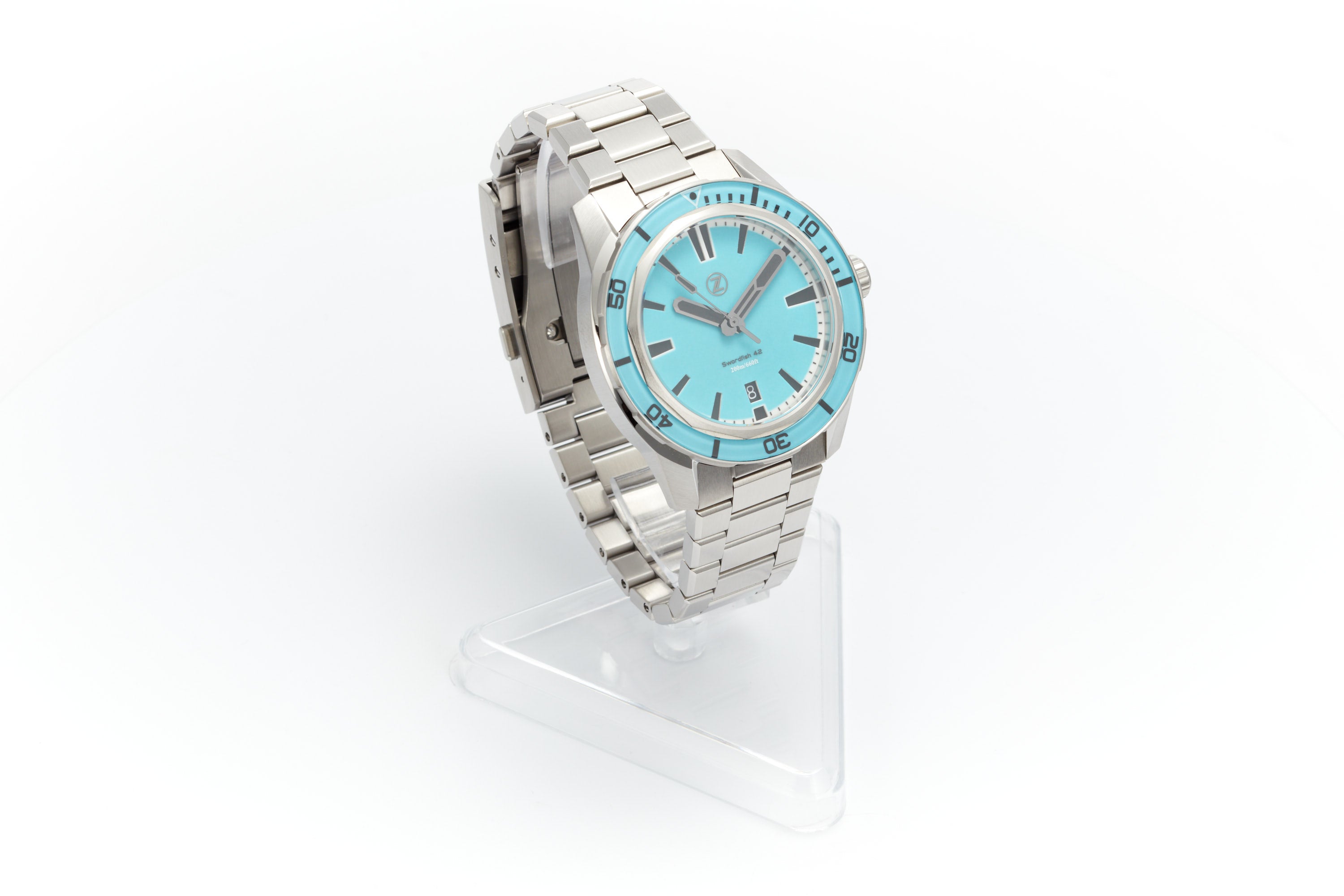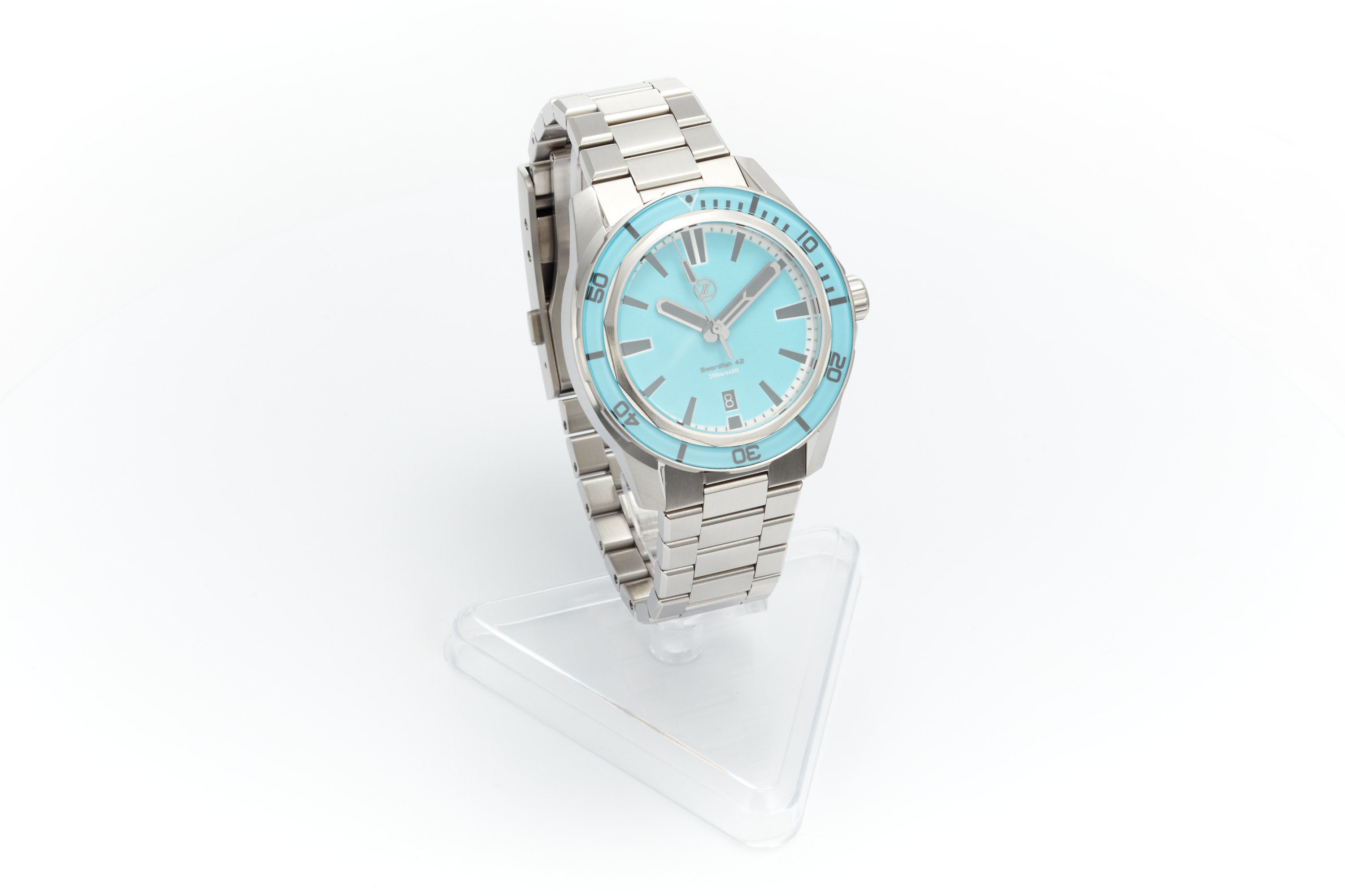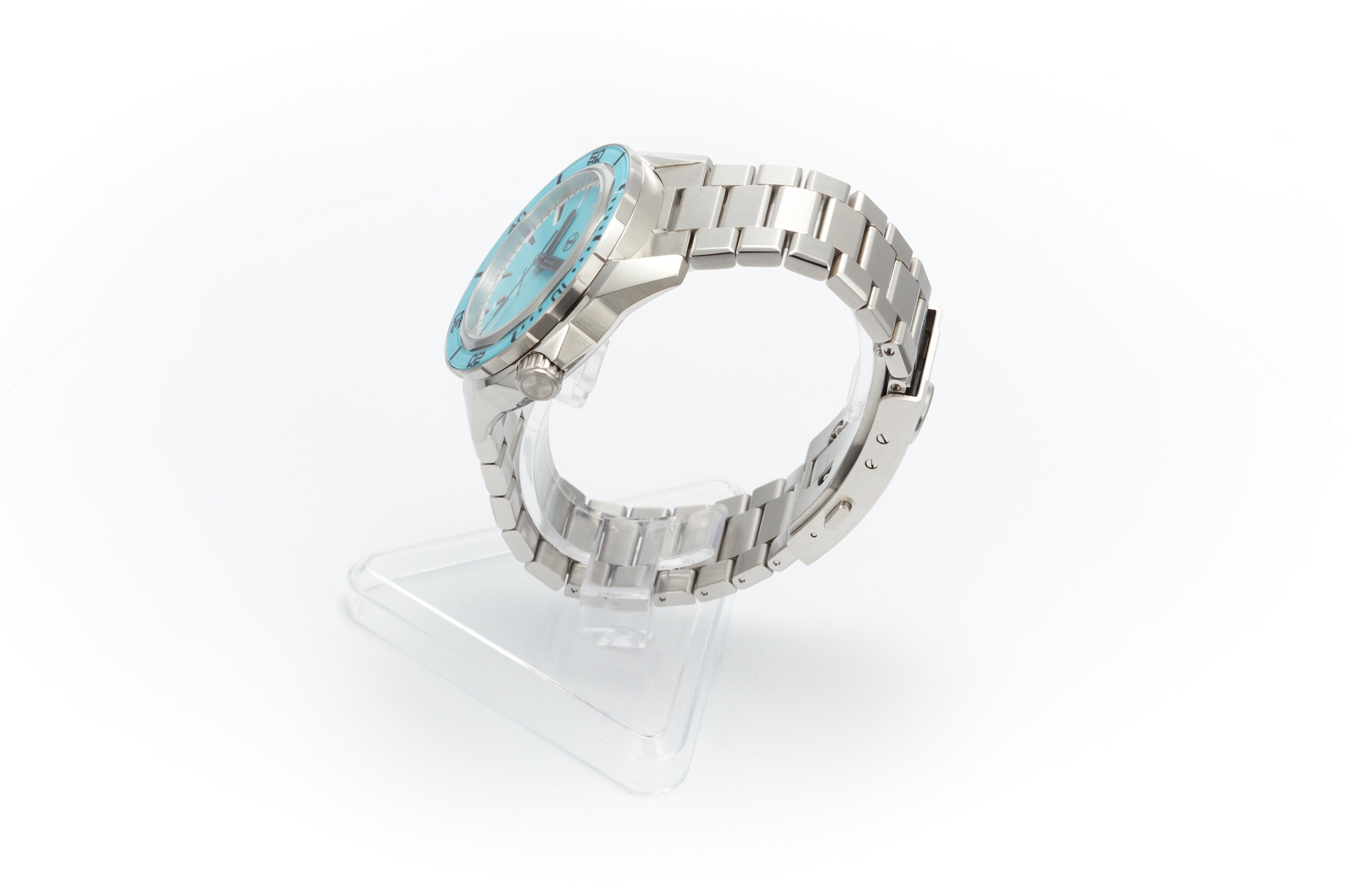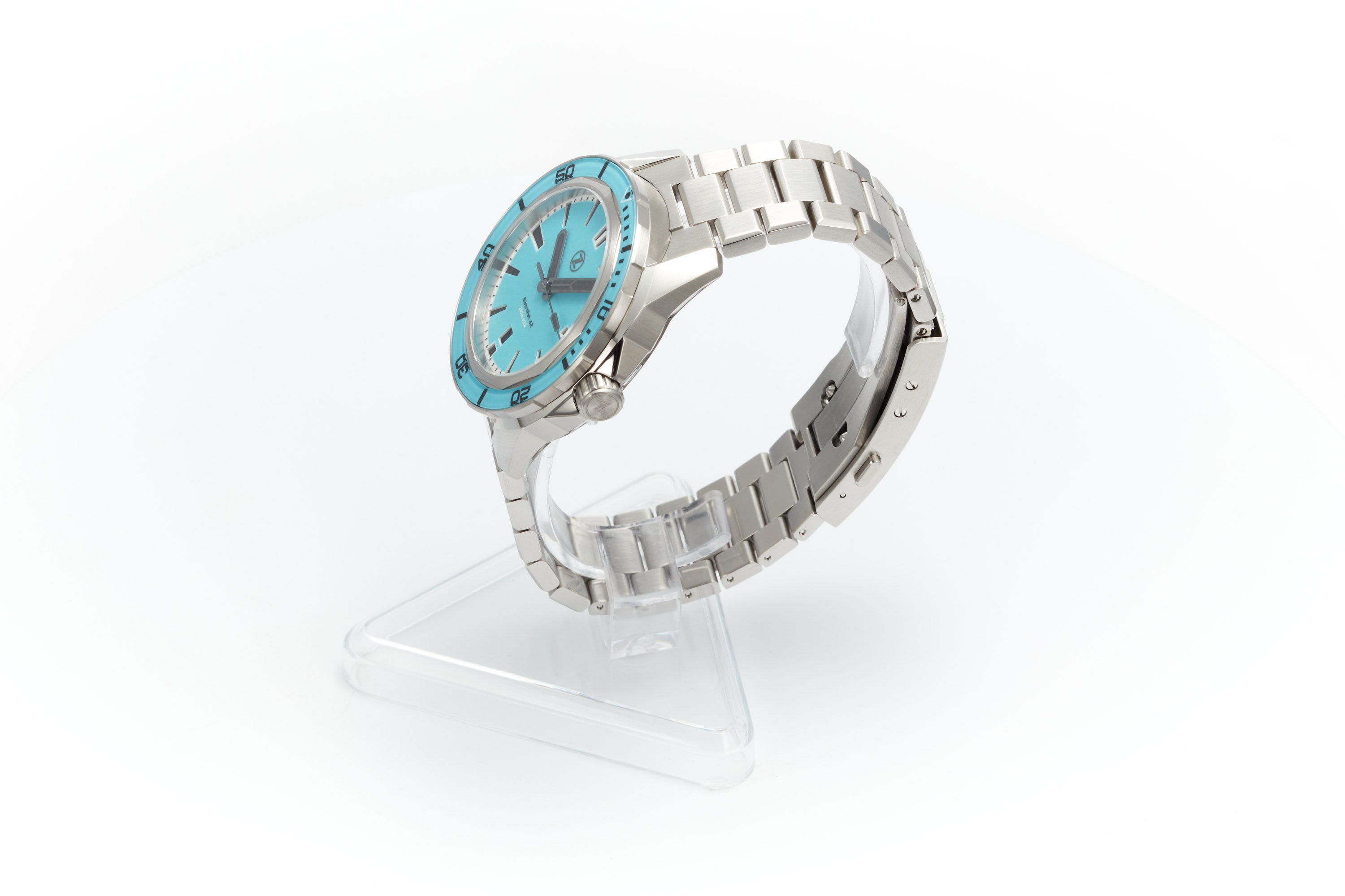 Fully lumed dial and sapphire bezel with Light blue Superluminova