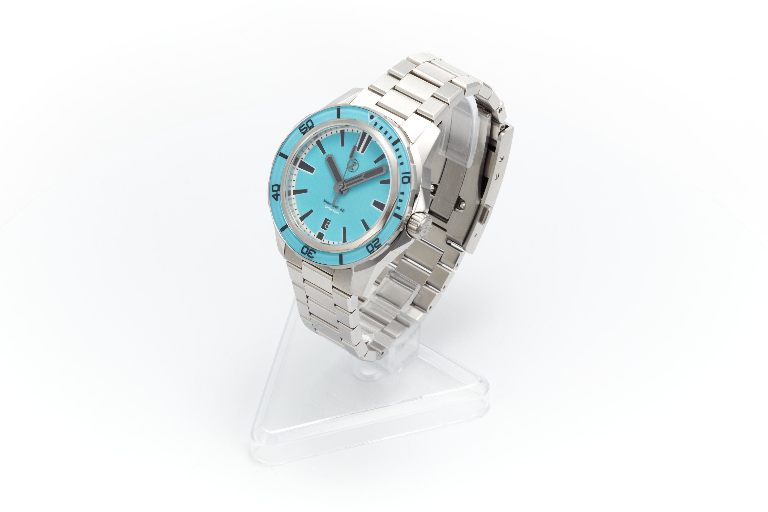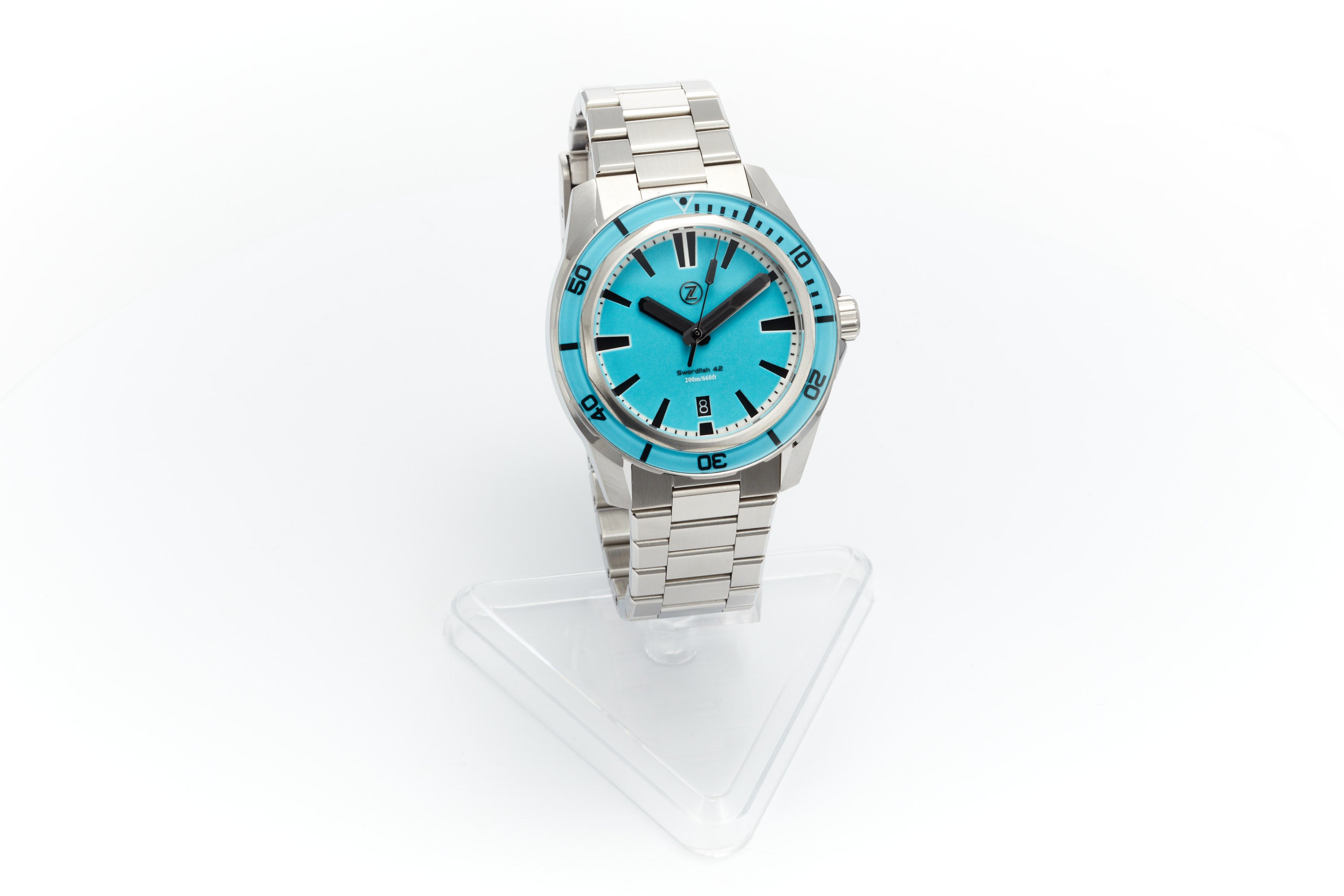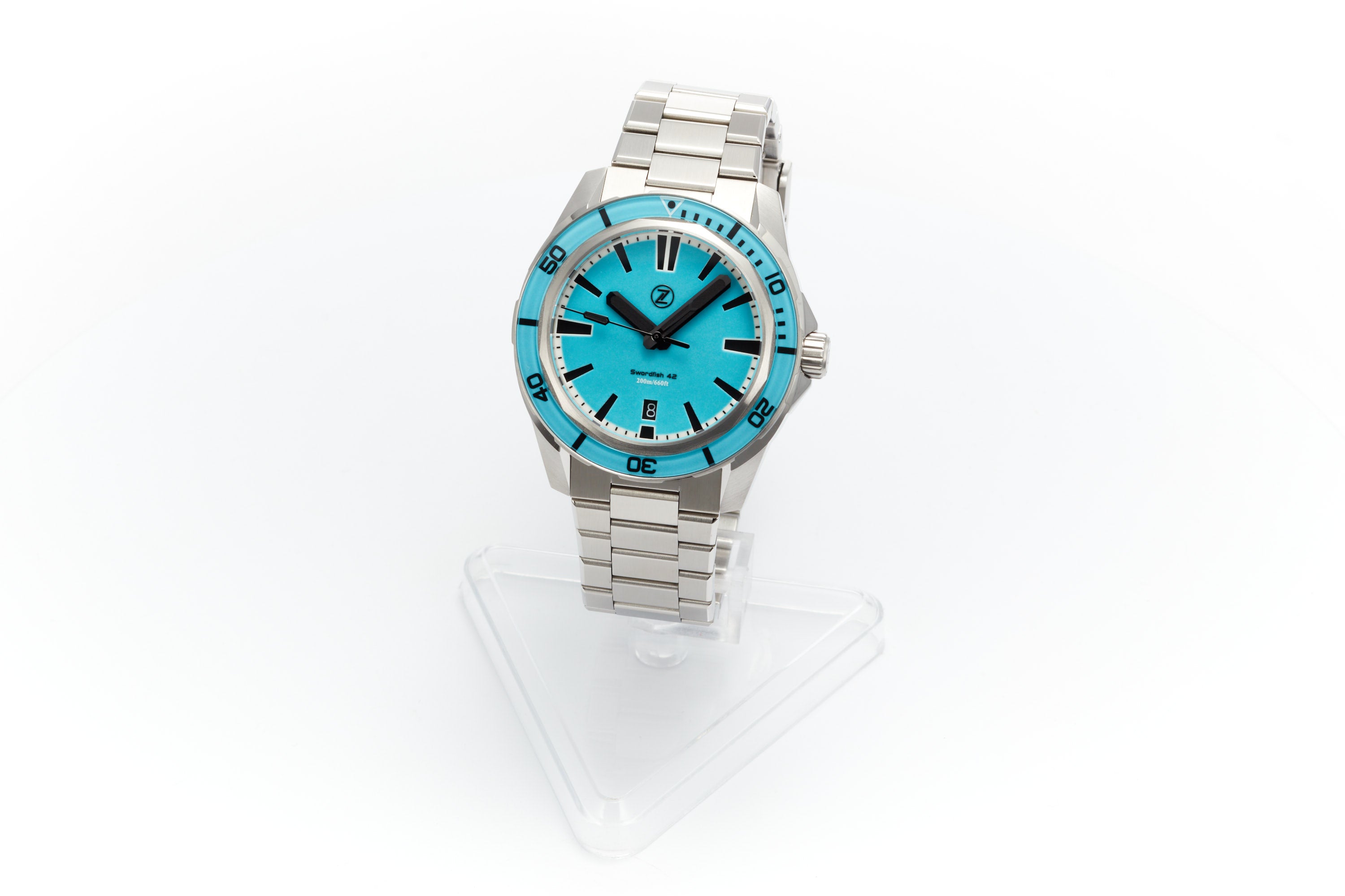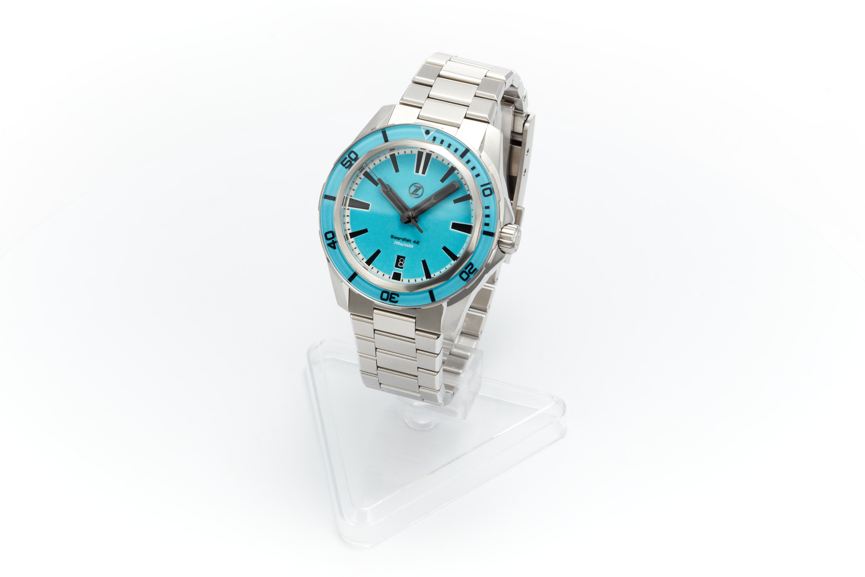 Fully lumed dial and sapphire bezel with Light blue Superluminova