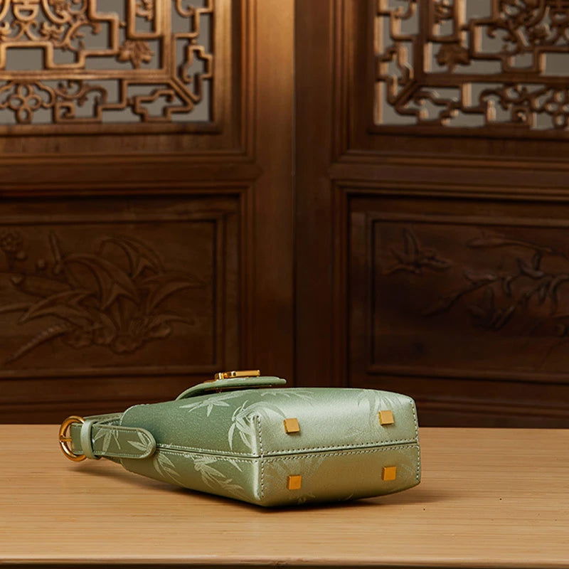 【Nature-Inspired Design】Beautifully embossed bamboo leaf pattern on genuine cowhide leather, reflecting traditional Chinese aesthetics.
