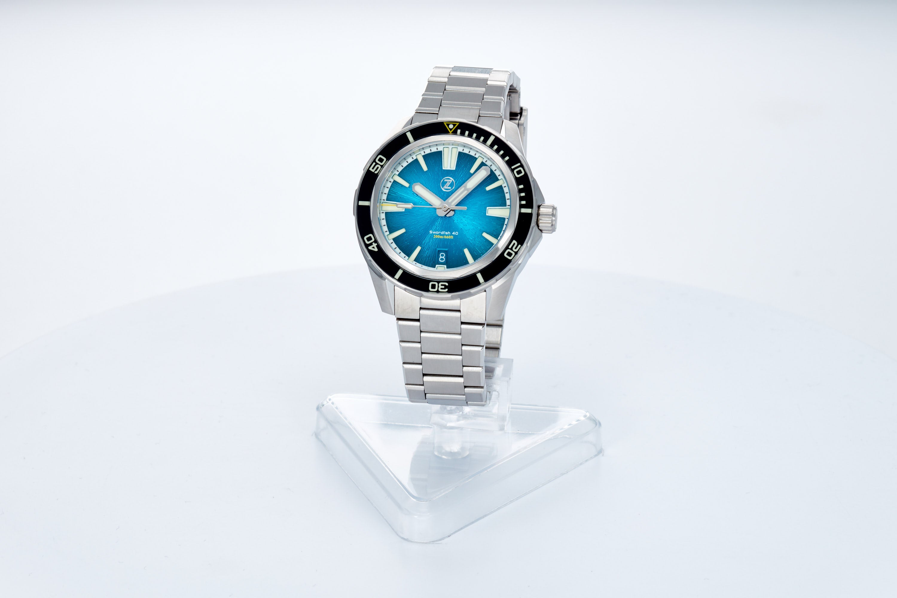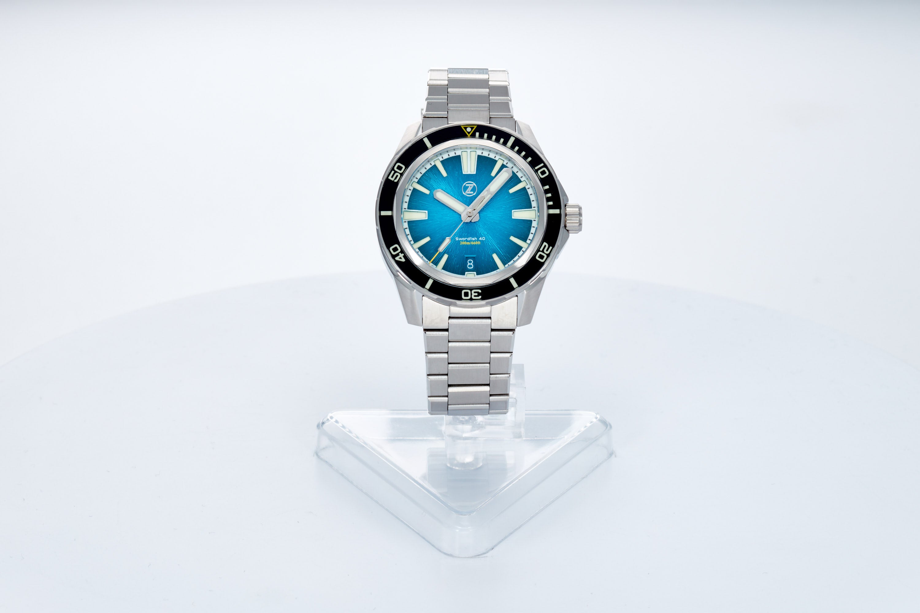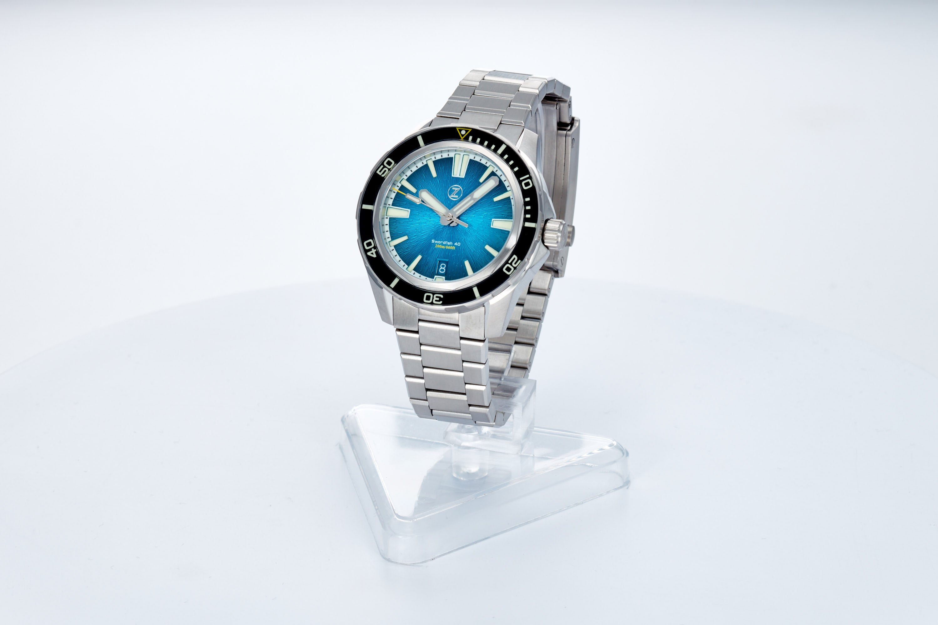 Fumé Tealdial with black sapphire insert, with a mix of C3 and BGW9 lume