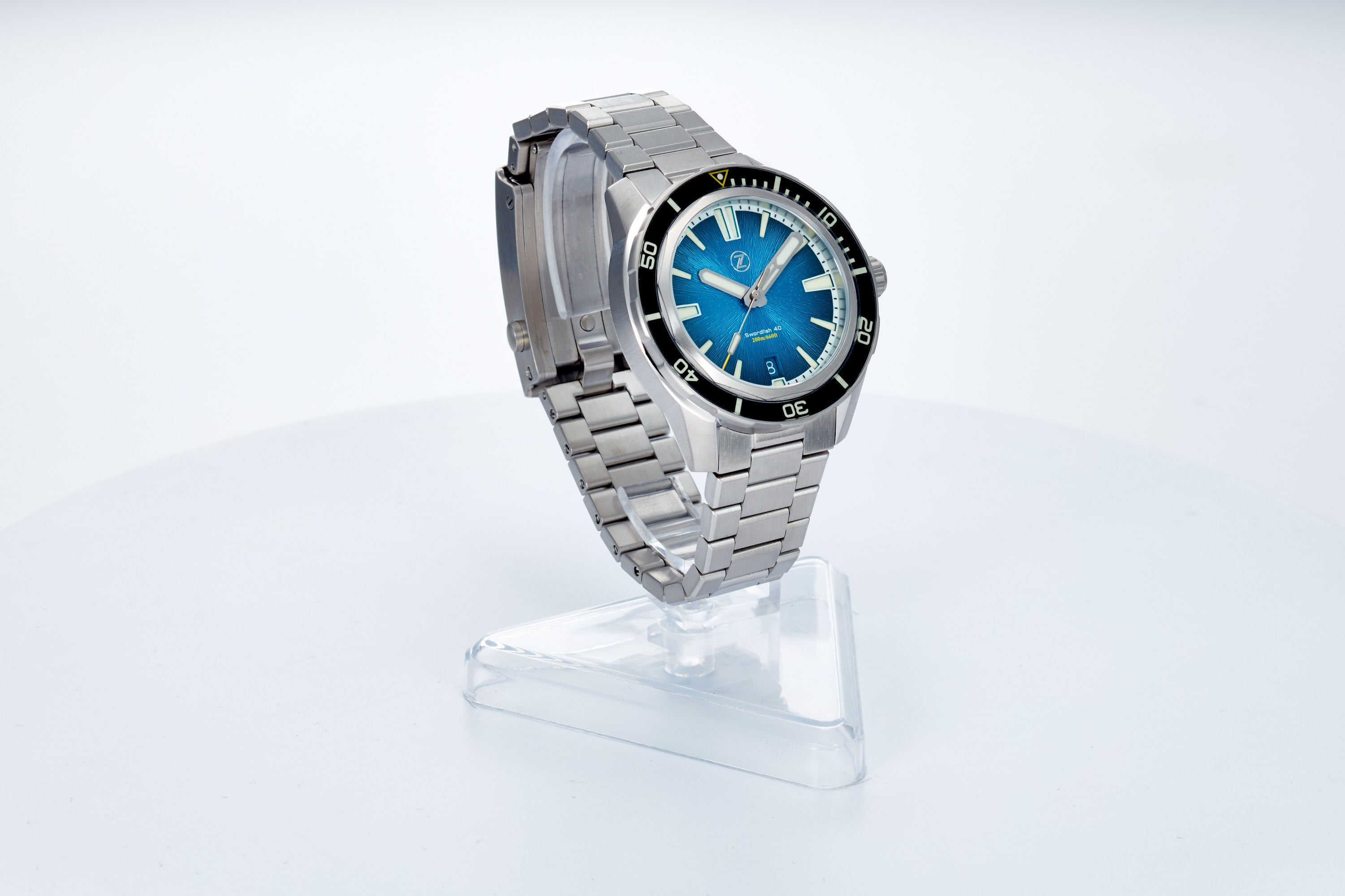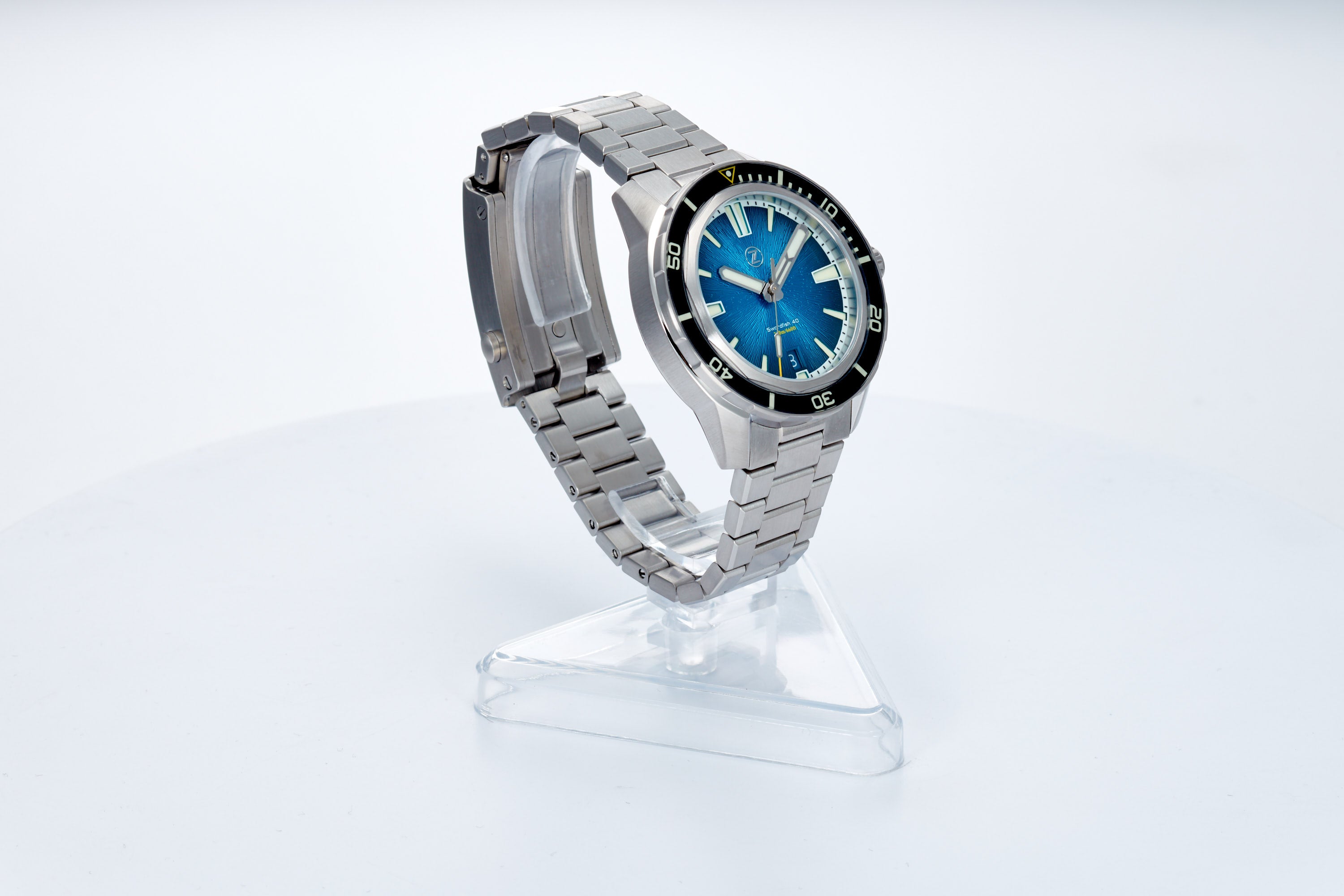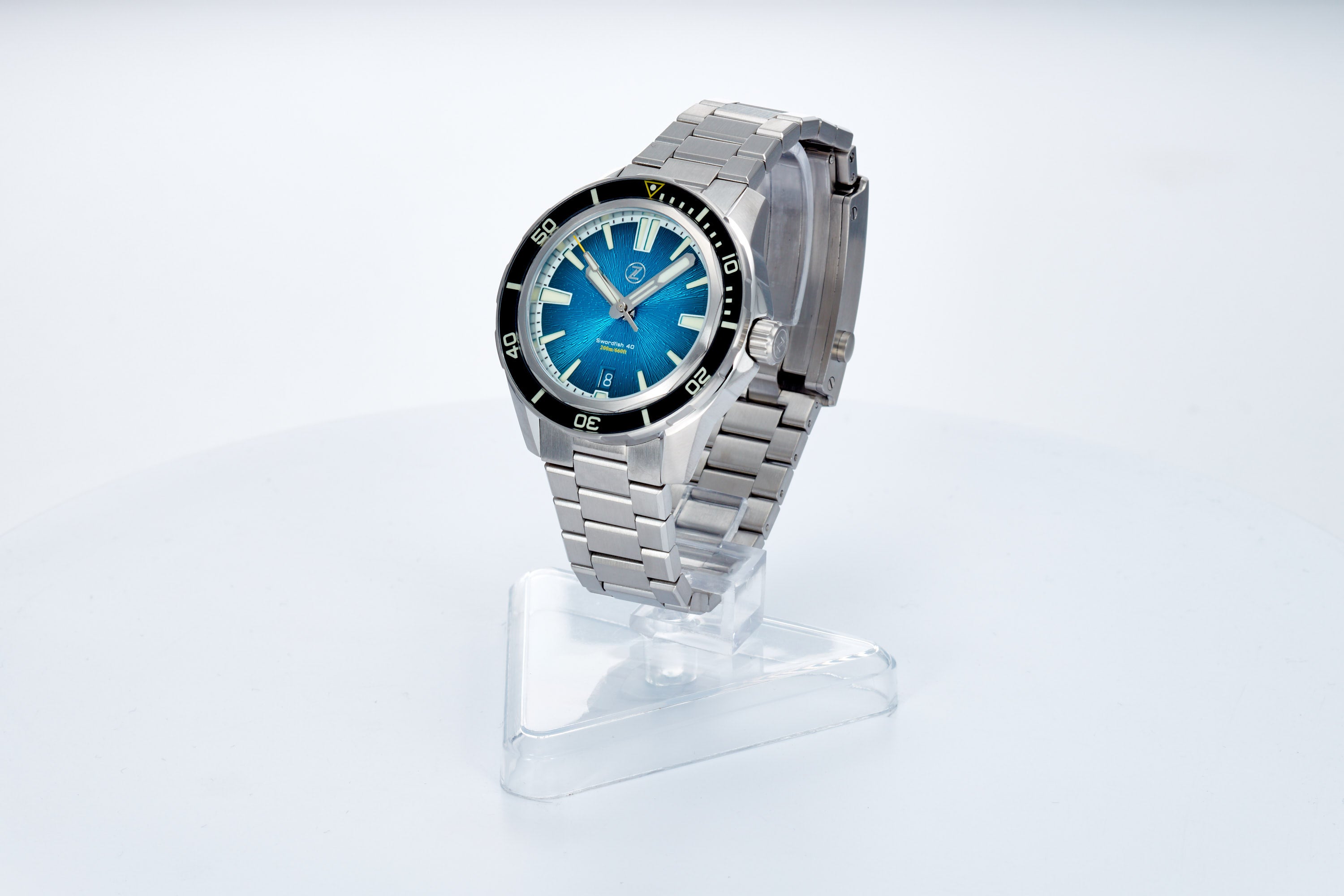 Fumé Tealdial with black sapphire insert, with a mix of C3 and BGW9 lume