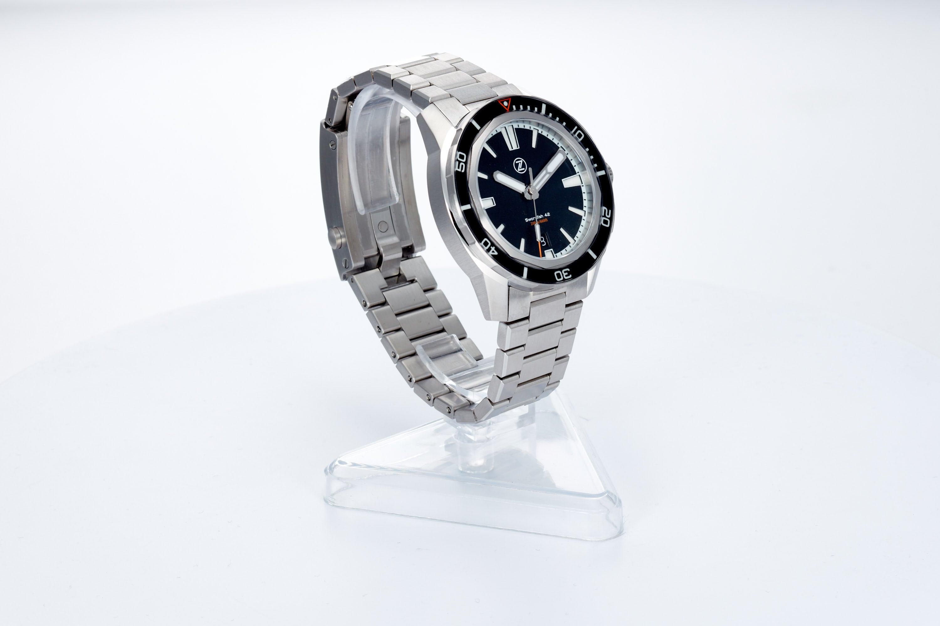 Matte black dial with BGW9 lumed hands, bezel and indices